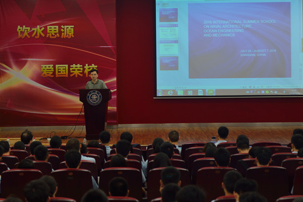 本届国际暑期公司共邀请了来自美国、法国、日本、韩国、丹麦、意大利和中国的28名著名专家学者为同学们授课,并穿插安排了丰富的专业实践与文化体育活动。首日,上海交大教授廖世俊、张新曙、李晔和白勇分别为同学们讲解了关于稳态精确与近共振水波的研究、深海油气开发的研究进展、海上新能源发展前景和海底管道与立管等课程内容,深入浅出、生动有趣的讲述方式开拓了同学们的视野,启发了思考。