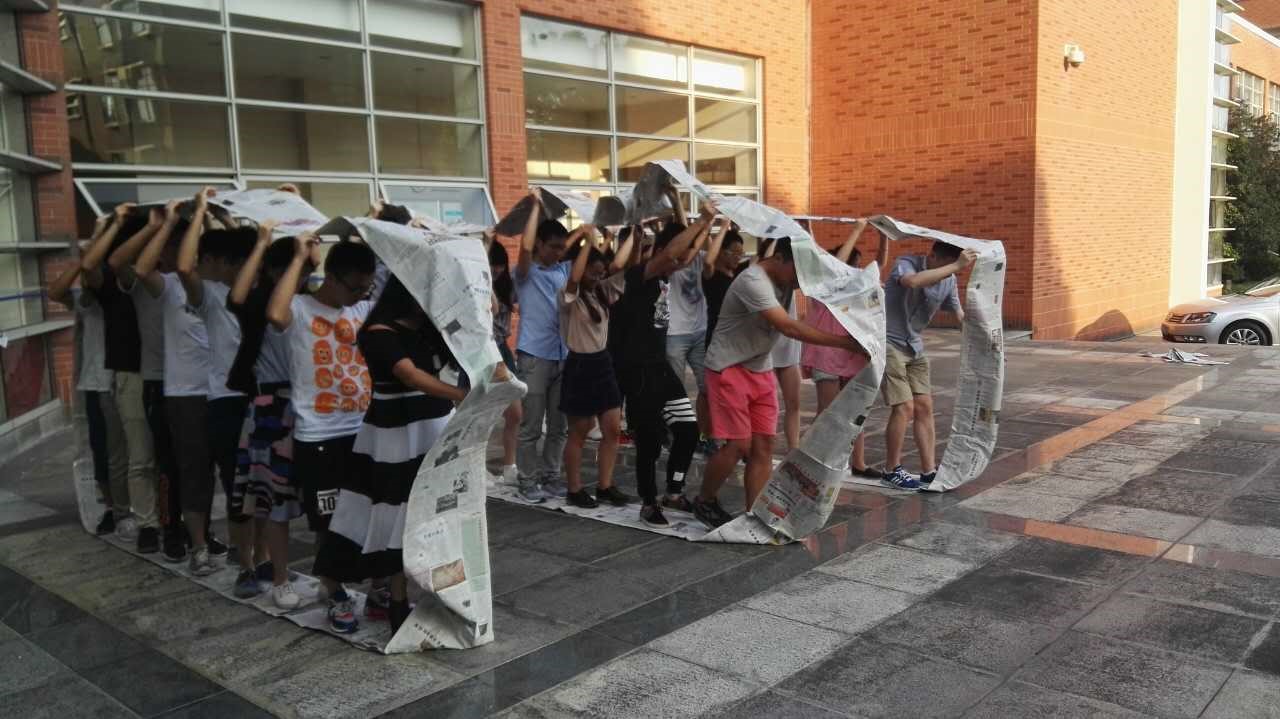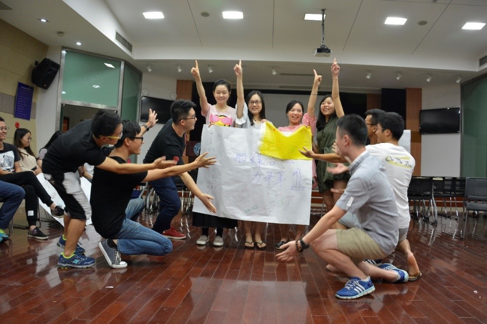 在培训师的指导下,各成员首先组成了三支小分队,并确定了队长、队秘和口号等。成员们充分发挥了想象力和创造力,形成了力争第一的“I船媒”队、一起哈皮的“划来士”队和多拿红花的“亦可赛艇”队等颇具特色的队名。在组队过程中,同学们共同探讨团队建设,成员间逐渐熟悉。