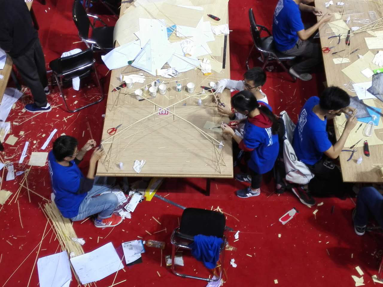 模型制作于14日开始,参赛队员根据给定的材料在14小时内完成模型制作。队员们的结构方案以拱结构受力为核心,辅以张拉结构实现结构的强度和刚度之间的平衡。加载测试分为两个阶段,第一阶段测试模拟结构在正常使用极限状态下的性能,第二阶段测试模拟结构在承载能力极限状态下的性能。最终,伟德bv国际体育代表队获得了本次大赛的三等奖。