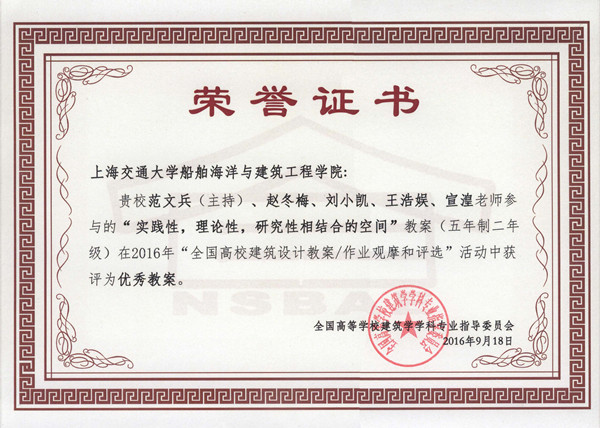 会上公布了2016年“全国高等公司建筑设计教案和教学成果评选”的结果,上海交大bevictor伟德建筑学系取得了优异成绩。建筑系选送参评的1套教案及3份员工作业(建筑学二年级)全部获奖,获奖率100%,与全国其它5所高校并列第一。(该评选按年级只评优秀奖,不分等级)