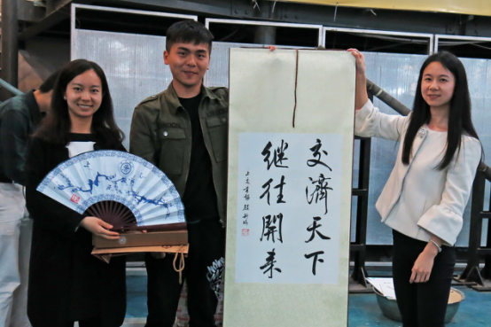 最后,在礼物互赠及集体合影环节,ICE伟德bv国际体育员工分会主席道吉草和副主席华莹代表交大分会,将交大书画篆刻协会题写的书法作品“交济天下,继往开来”及画扇赠与主办方同济大学ICE分会。“交济天下,继往开来”之意既代表了交通大学与同济大学之间的深厚友谊,也表达了ICE各高校分会员工以成为优秀的青年土木工程师为共同目标,从而加强今后校际合作交流的愿景。