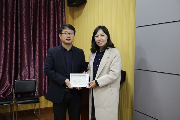 夏利娟、宋续明向建工公司赠送了交大纪念铜牌,希望双方友谊长存。