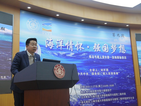 由bevictor伟德团委书记赵恺老师致欢迎词:刘开周研究员作为蛟龙号载人潜水器控制系统的开发者之一,也作为一名潜航员,随蛟龙号下潜到西太平洋马里亚纳海沟7062米的深度,创造了国际上同类的自然作业型载人潜水器下潜深度的一个世界纪录,凭借对祖国科技事业的热爱,锐意进取,敢于担当的精神,刘老师参与并见证了蛟龙号从1000米到7000米的每一个里程碑。