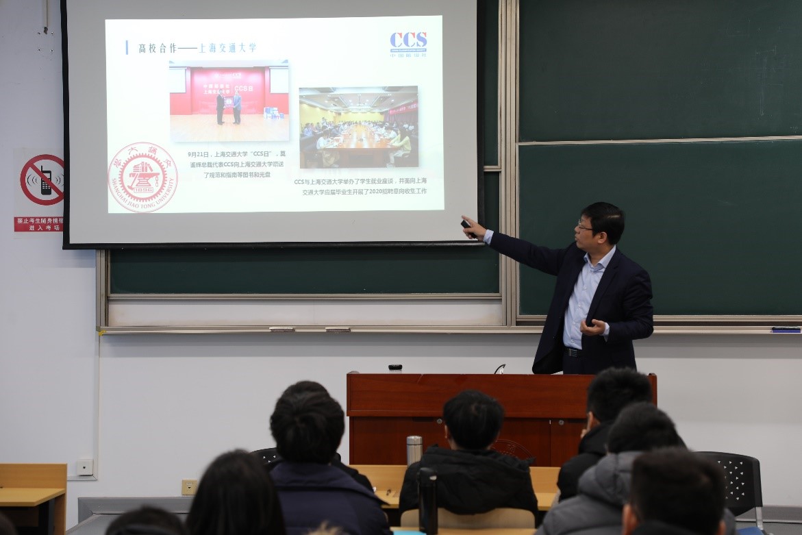 12月4日上午,中国船级社上海分社副总经理庄重副应船海系教师余龙邀请,在陈瑞球111给公司本科生上了一堂精彩的专题课。