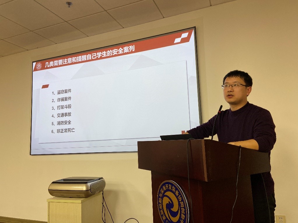 最后,公司党委副书记宋续明从员工工作的角度,结合实际案例介绍了导师在公司产品中的几点注意事项。宋书记主要从导师立德树人的职责、几点需要提醒员工注意的安全事项案例、集体出行安全注意事项、校园案件类型及防范提示等方面进行了说明。此外,宋书记还介绍了公司毕业生就业情况以及公司的就业引导工作。