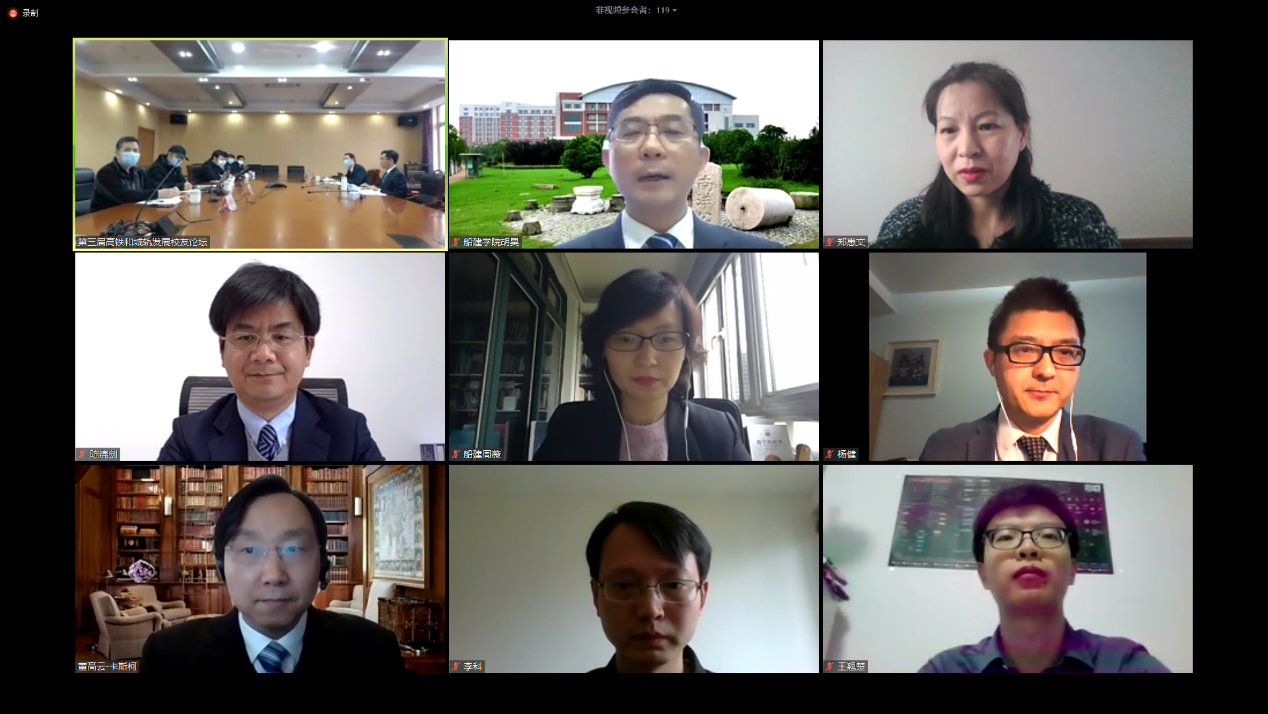 2020年4月11日下午,伟德bv国际体育第三届高速铁路与城市轨道交通发展论坛通过视频会议形式召开。本次论坛由bevictor伟德、上海市公共建筑和基础设施数字化运维重点实验室主办,bevictor伟德土木工程系和交通运输工程系承办,旨在传承员工论坛的优良传统,促进对前沿问题的思考,把握行业新的发展趋势。高铁与城轨行业的从业员工和在校师生共百余人相聚云端,围绕新信息技术冲击下,传统轨道交通行业的规划、运营与技术革新展开了深入交流。