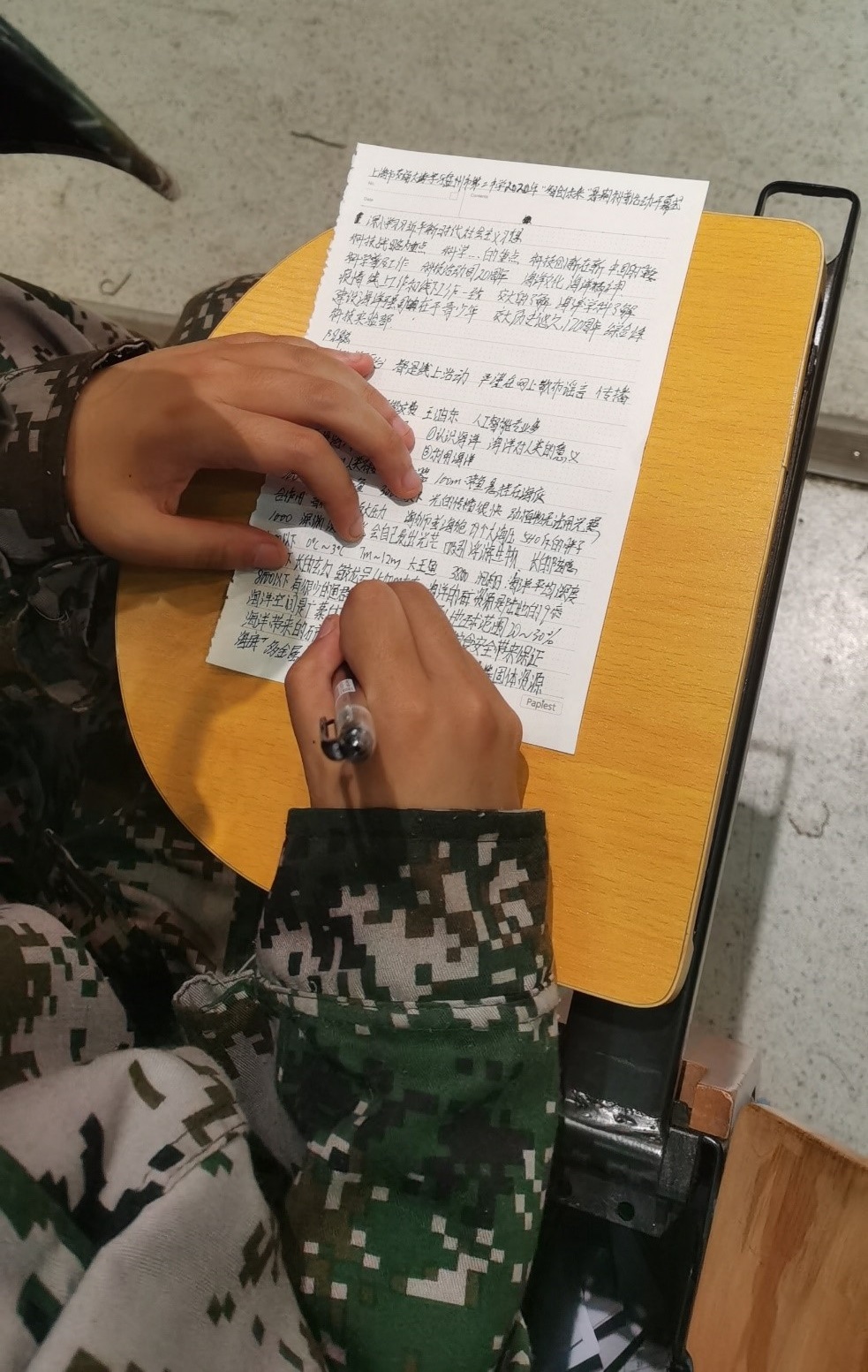 “我要把老师讲到的知识点都记下来,谁能再支援几张纸,咱俩就是好朋友!”刚结束军训就匆匆赶去听网课的迷彩服同学的内心在呐喊。8月24日至25日,贵州省盘州市第二中学的同学们通过云端科普课堂,线上聆听了海洋工程国重室精心准备的课程。在与授课老师的互动环节,一名迷彩帽男同学从浅海到深海、从海洋到航天,一股脑儿抛给老师四个问题,贵州孩子的求知热情令人动容。