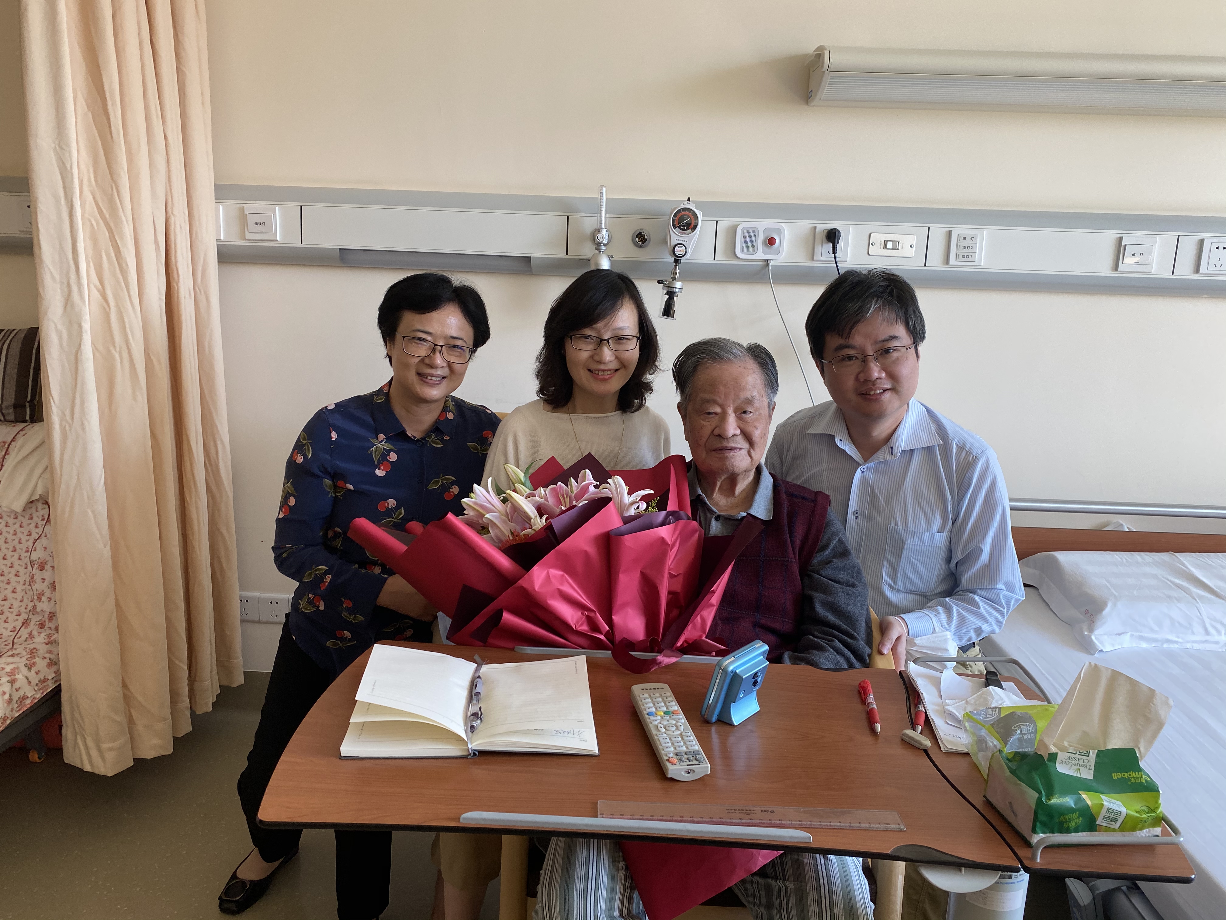 10月10日,公司党委书记周薇,副经理、船海系系主任薛鸿祥,经理助理、党政综合办主任朱惠红等来到华东医院看望中国科公司院士杨槱,共贺杨槱院士103周岁生日。大家为杨槱先生送上鲜花、蛋糕,共唱生日歌,为杨槱院士送去公司的关心和美好的祝福。此外,周薇一行带来了杨槱先生亲著的《帆船史》《轮船史》两本书,杨槱先生在书题字、签名,赠予给公司收藏。杨槱先生精神矍铄,场面温馨中充满欢乐,祝福杨槱院士福如东海、寿比南山。