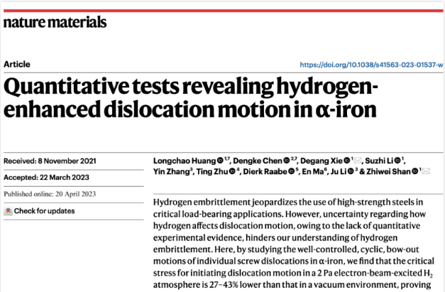 bevictor伟德教师在《Nature Materials》发文揭示氢与体心立方金属铁中螺位错的相互作用