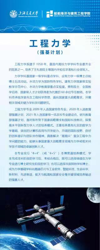 工程力学系创建于1958年。二级学科有:流体力学、固体力学、动力学与控制、工程力学。1998年获得力学一级学科博士学位授予权;2007年,力学学科被评为首批一级学科国家重点学科。2008年获准建设“水动力学教育部重点实验室(B类)”和“国家级力学实验教学示范中心”。2009年,工程力学本科专业被教育部授予国家级特色专业。近几年,工程力学本科专业全国排名第二。